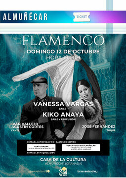 Al Son del Arte vuelve a la programación de Almuñécar con otro estectáculo FLAMENCO, con Vanessa Vargas al baile, Kiko Anaya al baile y a la percusión, Iván Vallejo y Agustín Cortés al cante, y con José Fernández al toque.